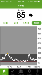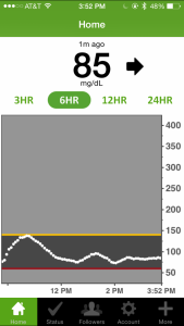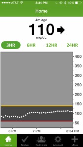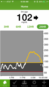 I wanted to add some images from my Dexcom CGM to help illustrate the process I have been going through as I have been shifting my diet to one that is a high-percentage carbohydrate (not necessarily in the total quantity consumed). To recap, I have been eating about 30-50 grams of carb per meal, with an emphasis on drastically minimizing fats and animal products of any kind-as well as processed foods of any kind. Fruits, roots and leaves have been my focus-when I say “carbs” understand that I am referring to whole foods and not cupcakes and Fritos- and although my adherence has not been 100 percent, it has overall been pretty good with minimal cheating! You can read about my first impressions here.