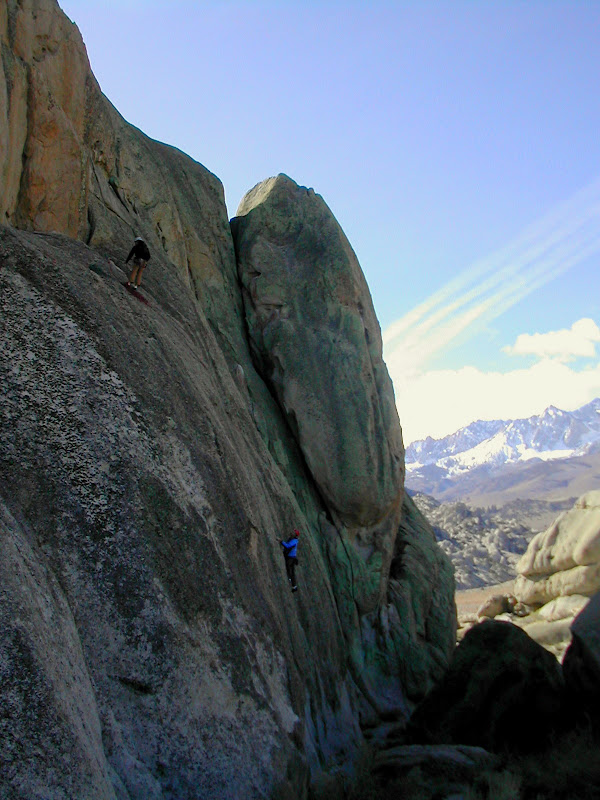 Most people know the Buttermilk country for its bouldering- of which there is a LOT, but the crags are pretty sweet and sport some amazing views of the Sierras.