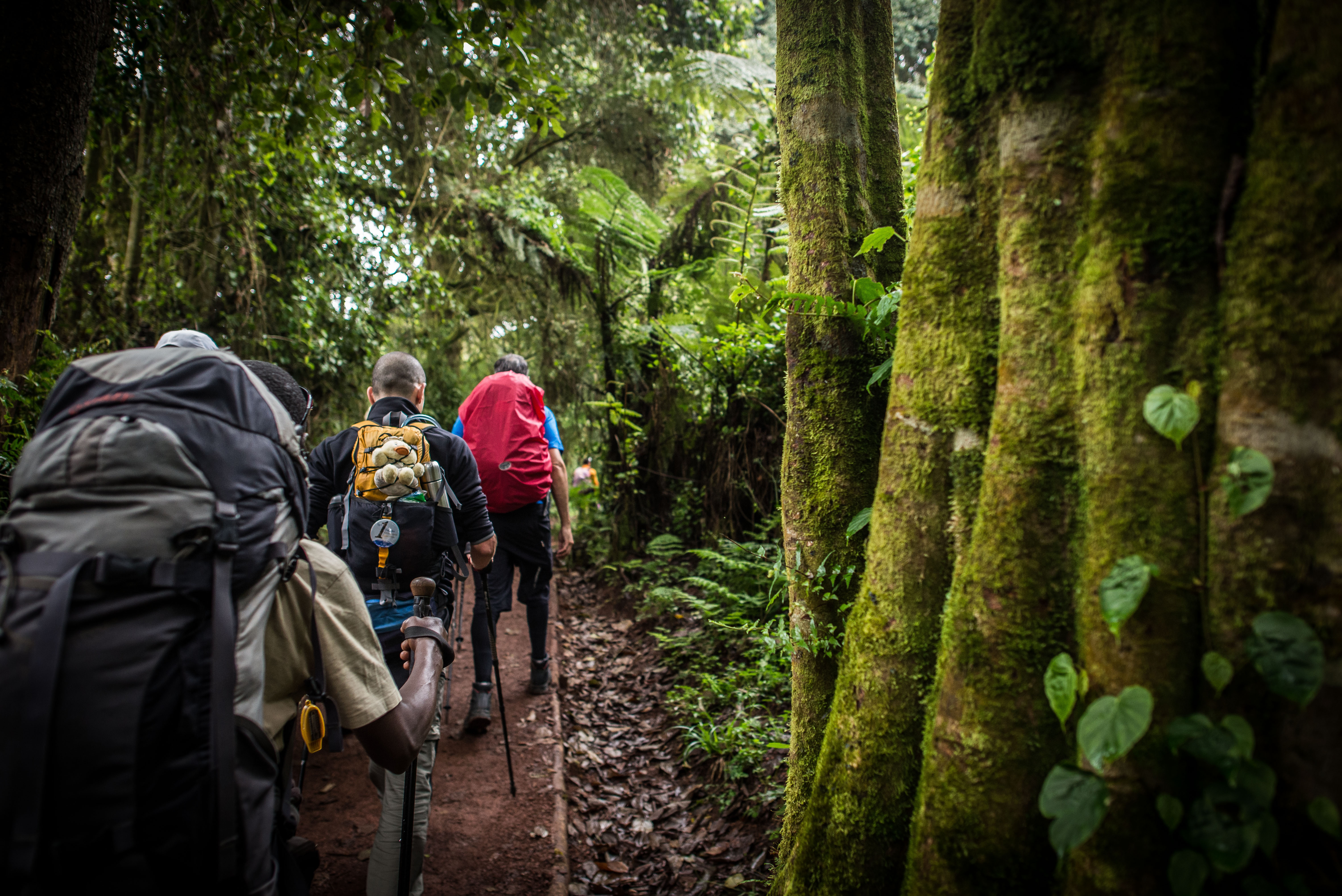 The start of the climb was cool and overcast with a bit of mud. Our guides fed us well-and often which presented a challenge for keeping blood sugar stable. Over the next several days we ascended out of the jungle canopy and into heather and moorlands-which were more arid-and dusty. Nights were clear and cold and mornings came early. I have never been a morning person but at 6 AM every day we were awakened and it was time to eat and then climb.
